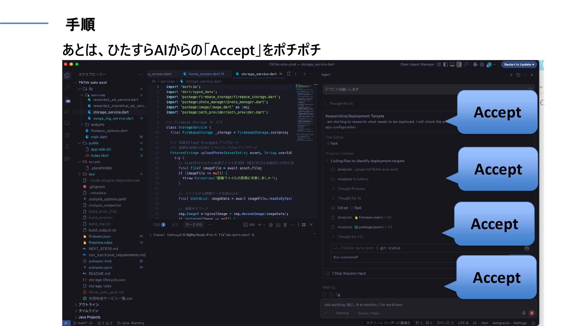 あとは、ひたすらAIからの「Accept」をポチポチ Accept Accept Accept Accept 手順