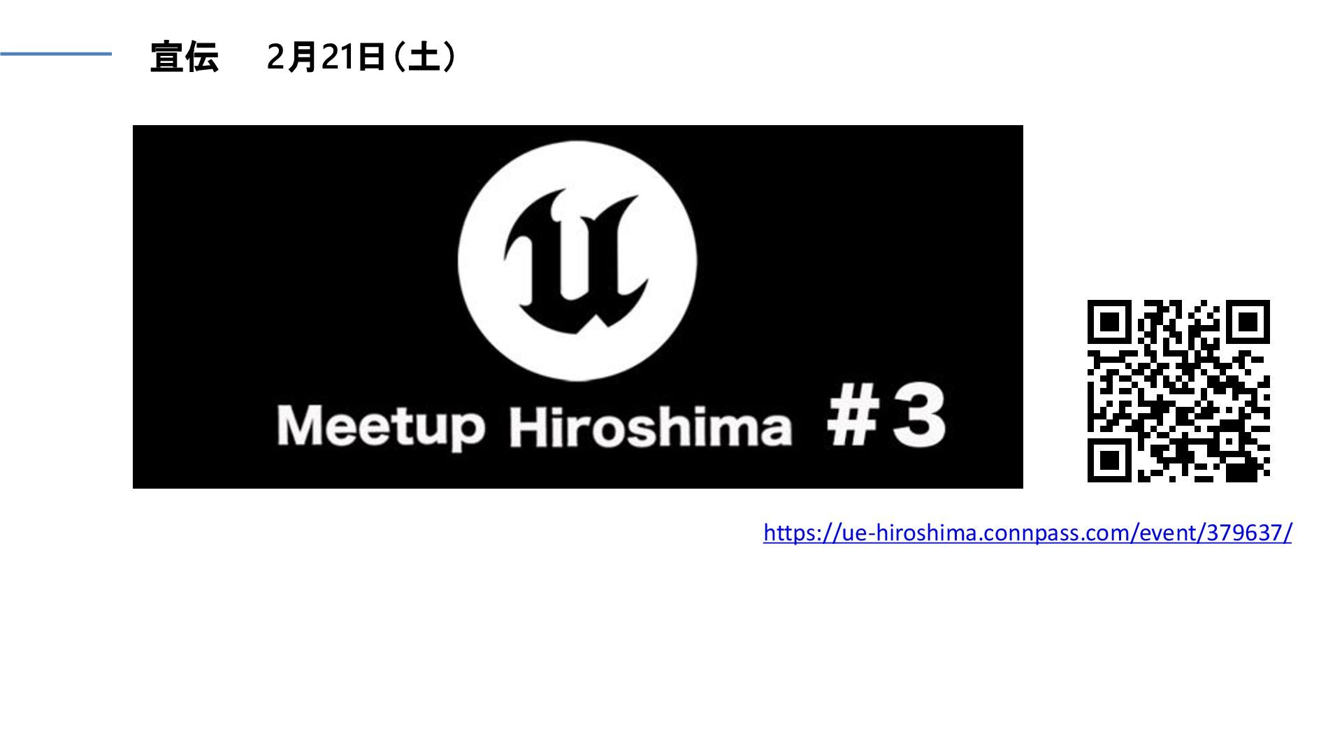宣伝 2月21日(土) Unreal Engine Meetup https://ue-hiroshima.connpass.com/event/379637/