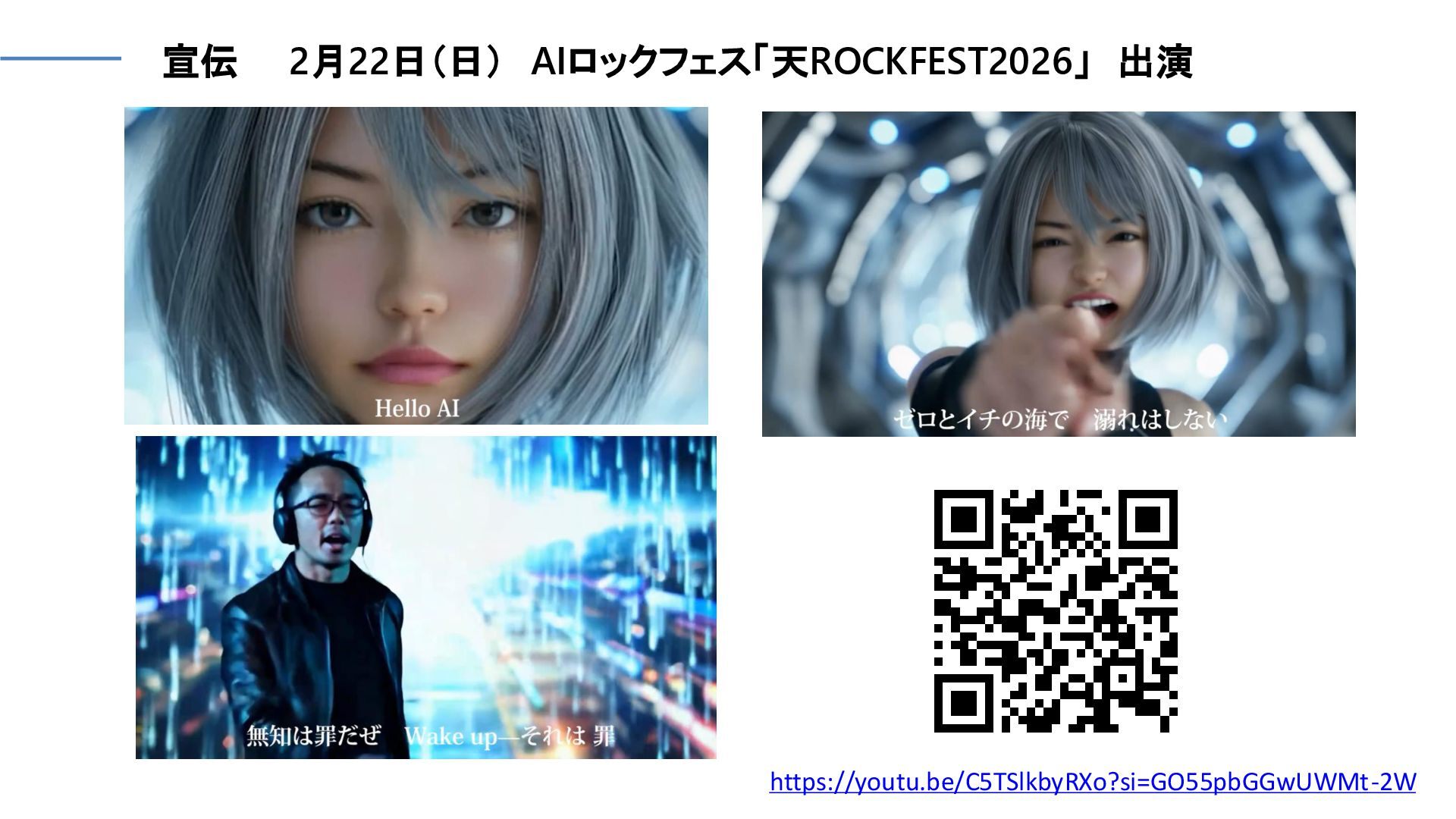 https://youtu.be/C5TSlkbyRXo?si=GO55pbGGwUWMt-2W 宣伝 2月22日(日) AIロックフェス「天ROCKFEST2026」 出演