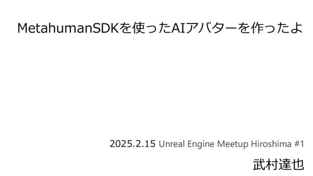MetahumanSDKを使ったAIアバターを作ったよ 武村達也 2025.2.15 Unreal Engine Meetup Hiroshima #1