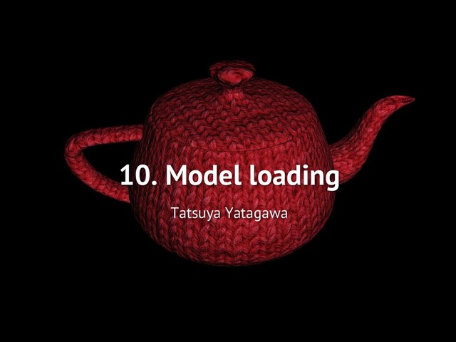 Computer Graphics Course @Waseda University # vertex data follows v 1.0 1.0 0.0 v 1.0 0.0 0.0 v 0.0 1.0 0.0 vt 1.0 1.0 vt 1.0 0.0 vt 0.0 1.0 vn 0.0 0.0 1.0 vn 0.0 0.0 1.0 vn 0.0 0.0 1.0 # face data follows f 1/1/1 2/2/2 3/3/3 Position, texture coordinates, normal vectors are identified by specifiers: v, vt, and vn, respectively. Polygon is defined by tuples of indices, “(pos. idx)/(texture idx)/(normal idx)”