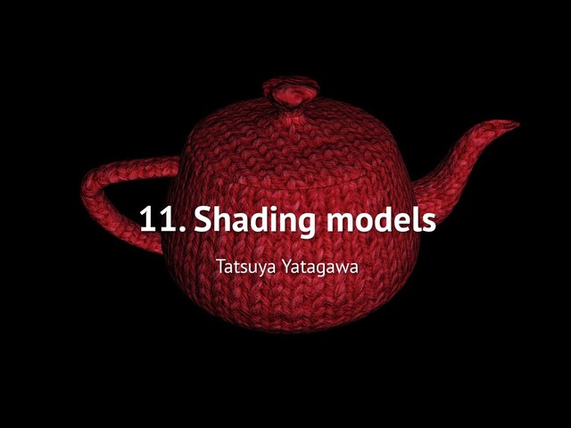 over upper hemisphere Computer Graphics Course @Waseda University 10 : diffuse reflection ratio (albedo) : normal vector : unit vector to light position Why does uniform reflection include dot product??? 𝐿& = 𝑘& 𝜋 max 0, 𝐧 ⋅ 𝐥 𝐿' 𝑘# 𝐧 𝐥