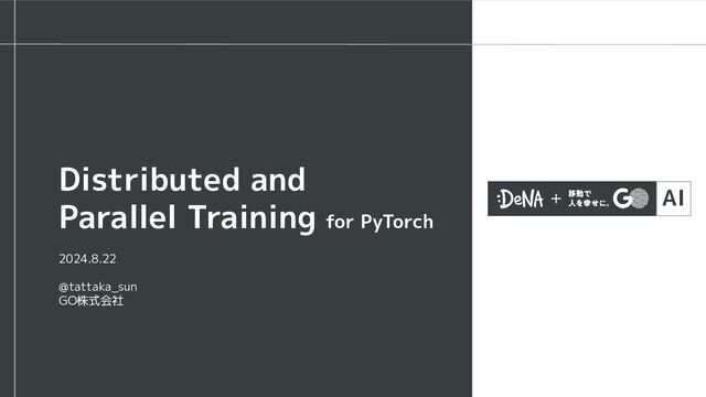 AI 2024.8.22 @tattaka_sun GO株式会社 Distributed and Parallel Training for PyTorch