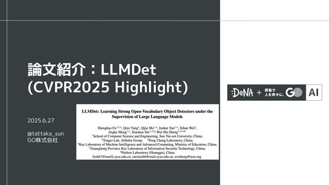 LLMDet: Learning Strong Open-Vocabulary Object Detectors under the Supervision of Large Language Models (CVPR 2025 Highlight)について紹介しました。