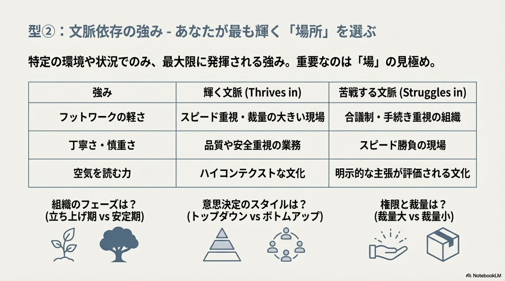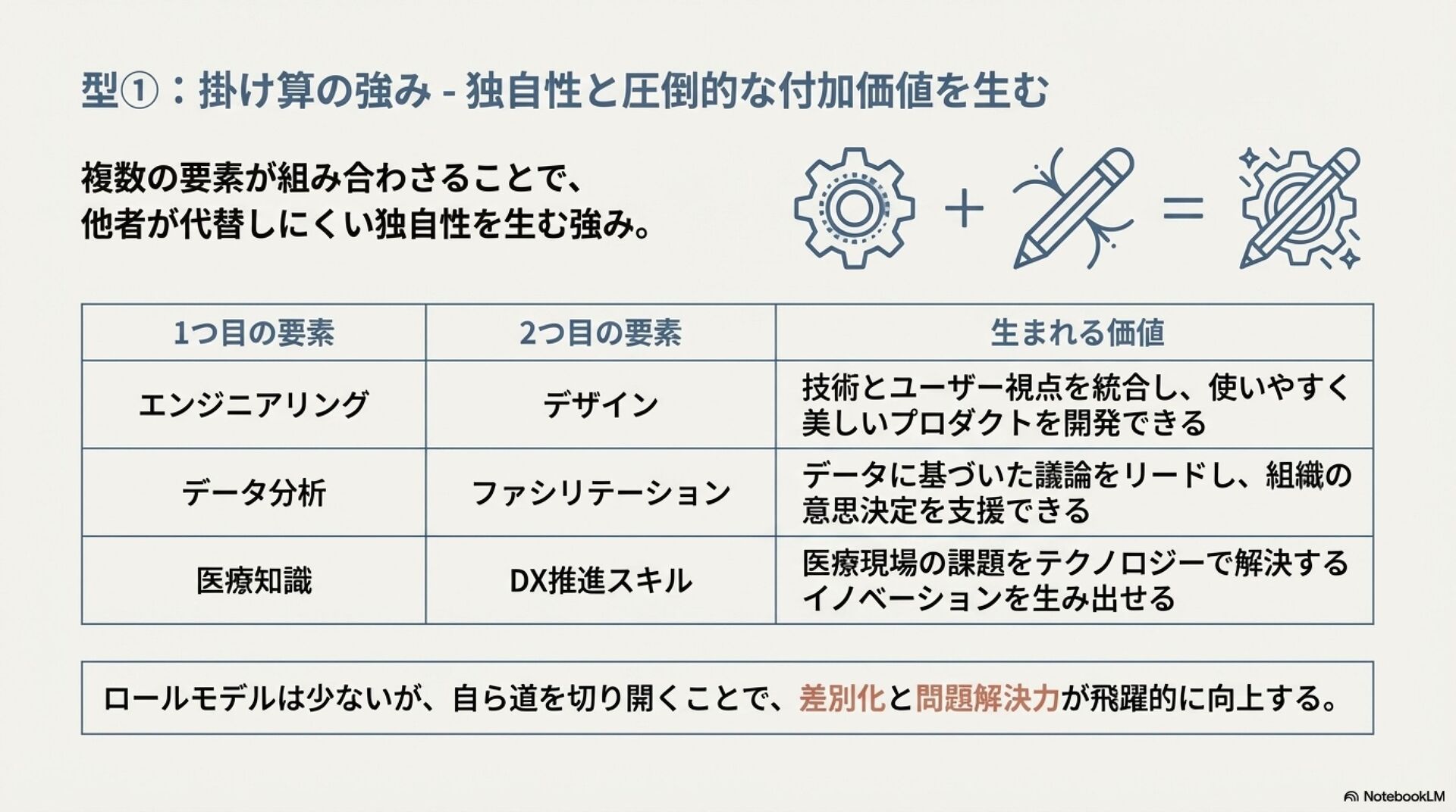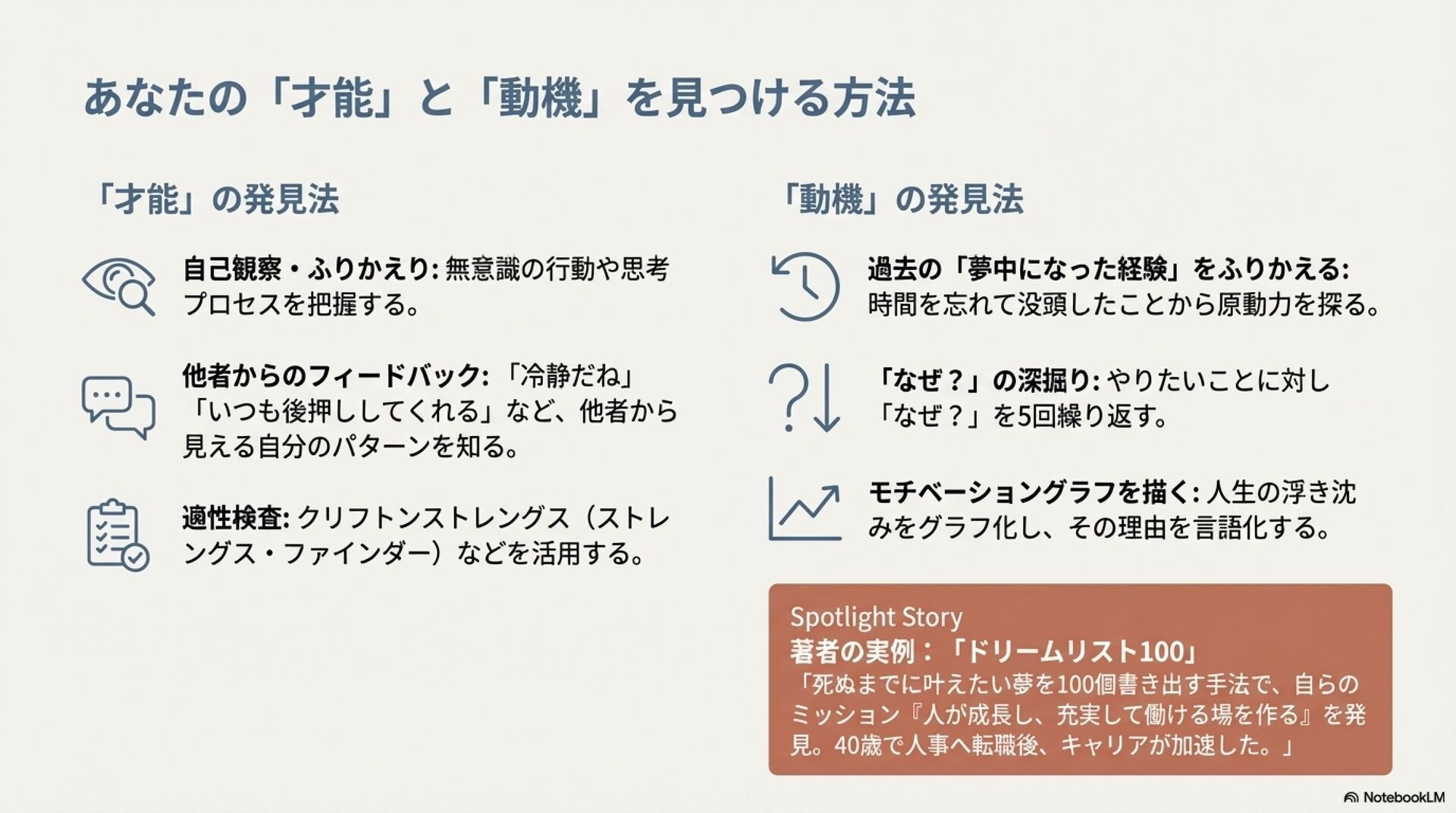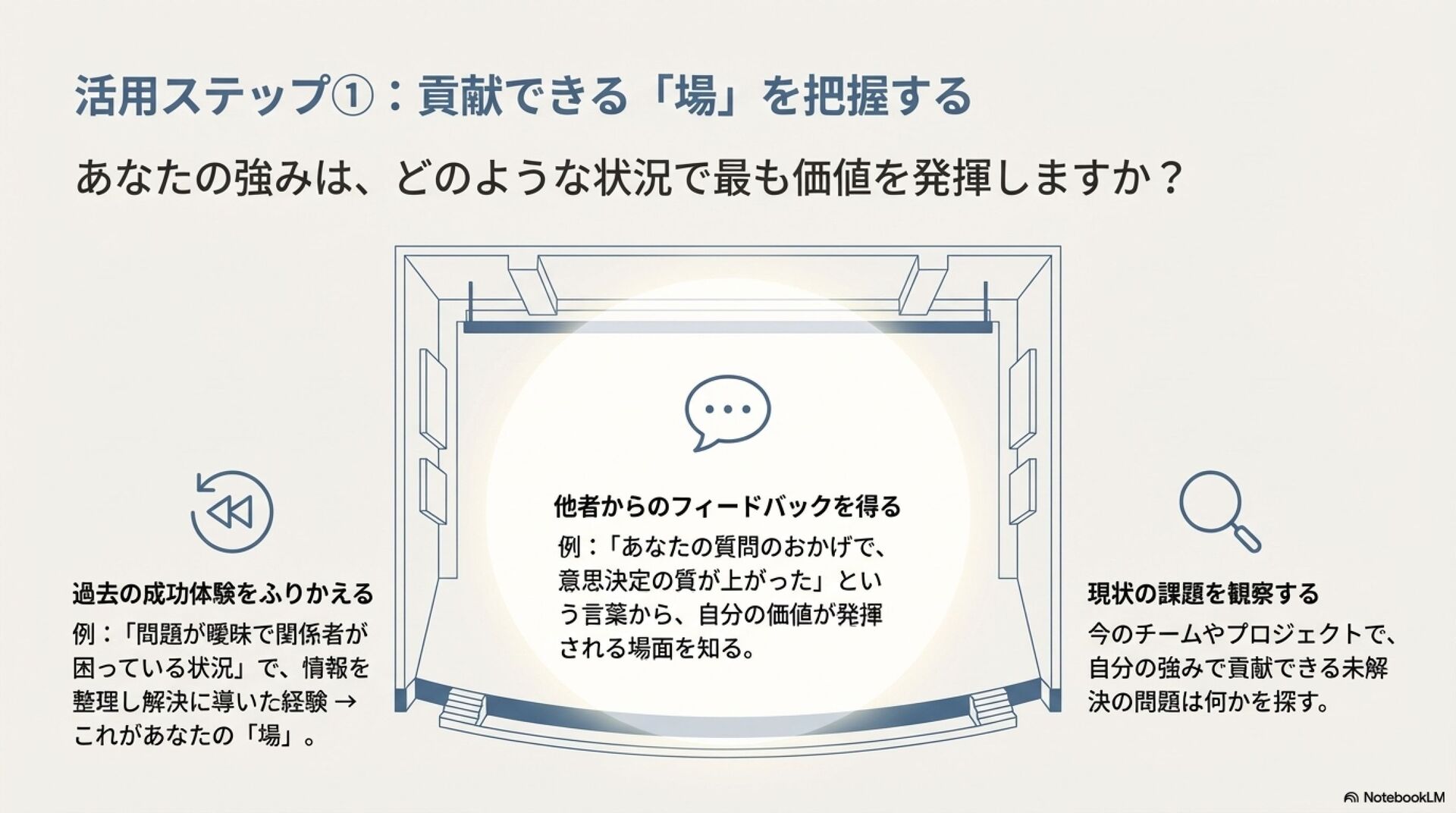 強みのデザイン入門 ZennBook ( https://zenn.dev/tbpgr/books/ee0950b3394ce0 )の内容を NotebookLM でスライドにしました。