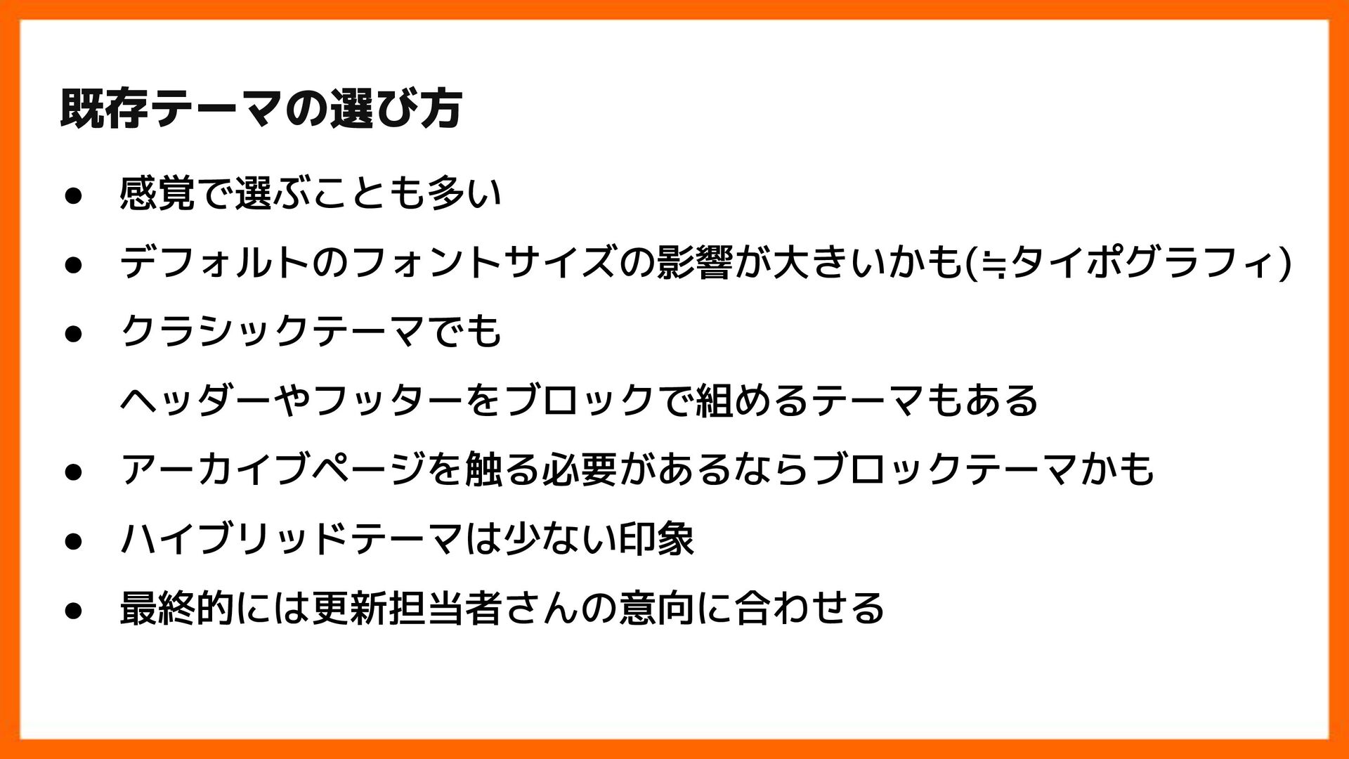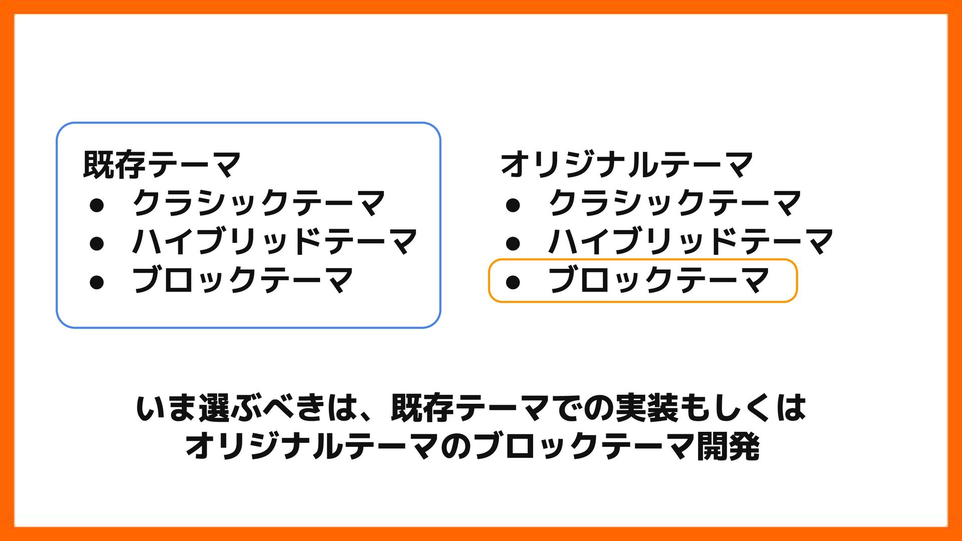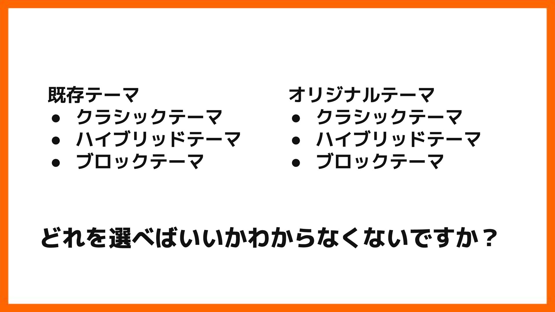 • ハイブリッドテーマ • ブロックテーマ どれを選べばいいかわからなくないですか?