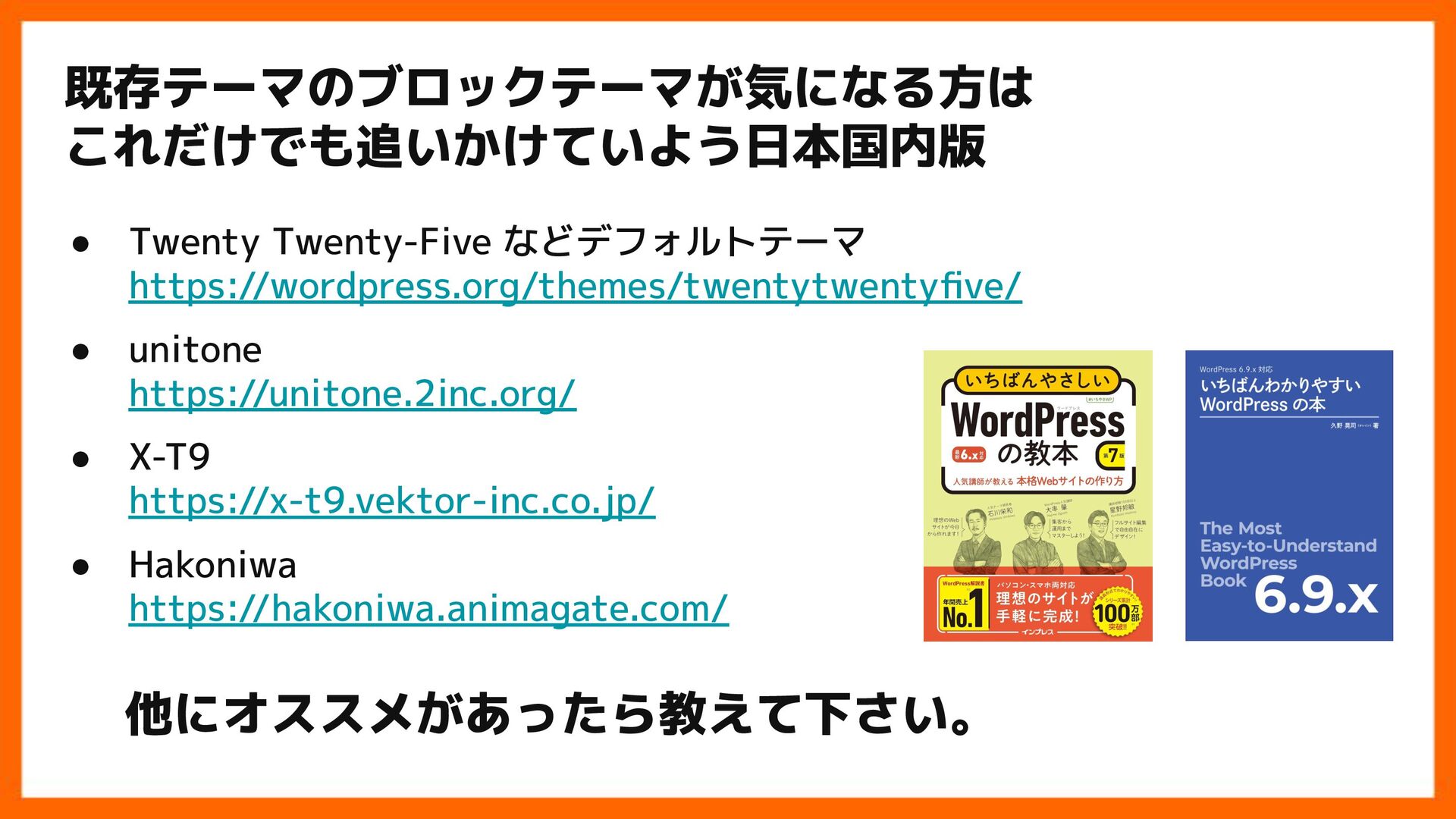 また、近年のWordPress開発で重要になっている ブロックテーマとtheme.json を中心に、