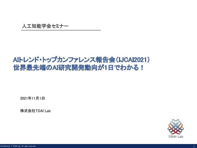 第81回人工知能セミナー (2021.11.1)「AIトレンド・トップカンファレンス報告会(IJCAI2021):世界最先端のAI研究開発動向が1日でわかる!」にて行われた発表資料になります。