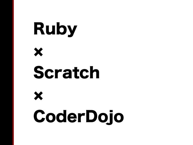 Agenda ・Scratch のご紹介 ・Scratch と Ruby を組み合わせて遊ぶ ・CoderDojo の活動について