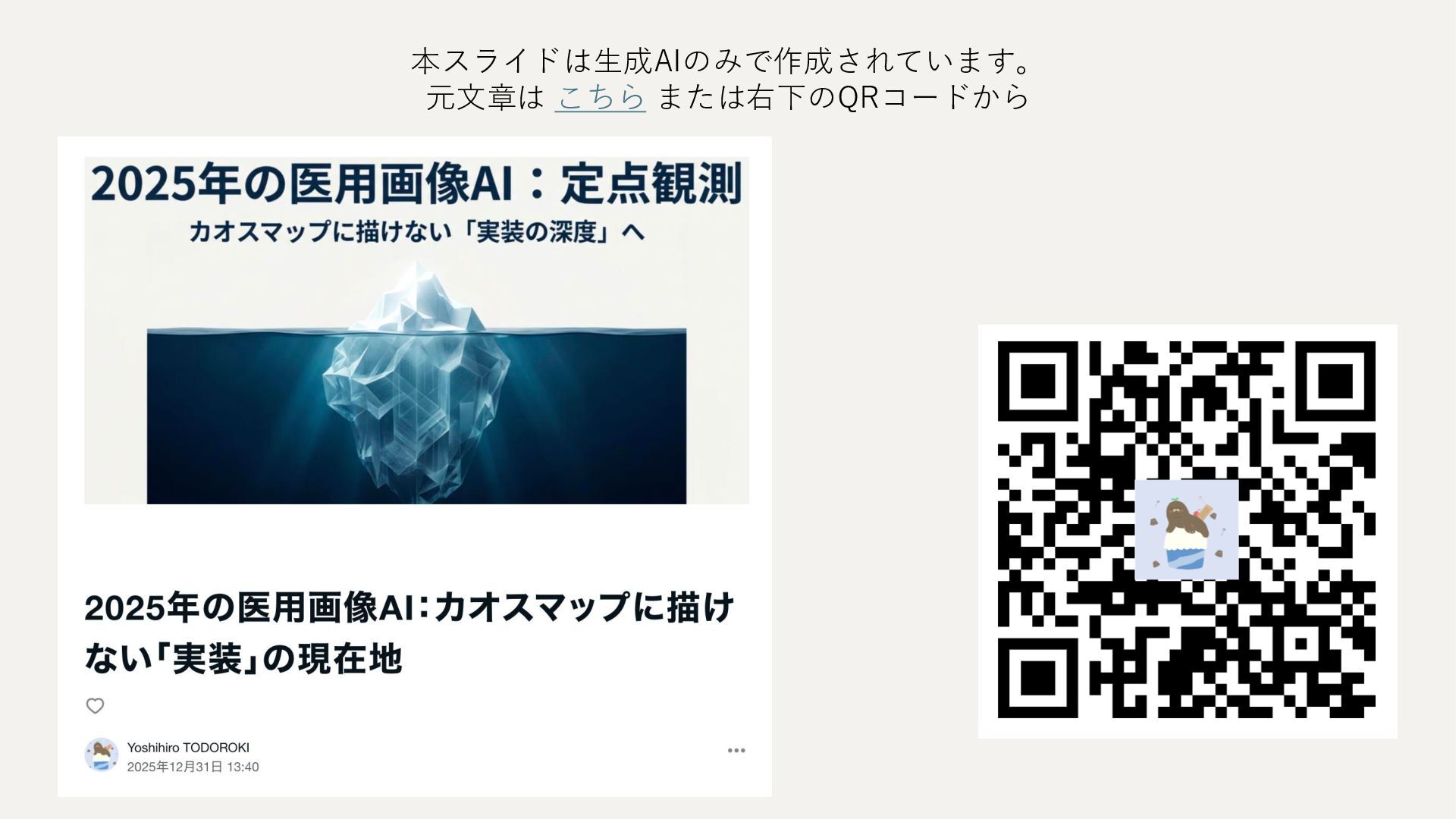 本スライドは生成AIのみで作成されています。 元文章は こちら または右下のQRコードから