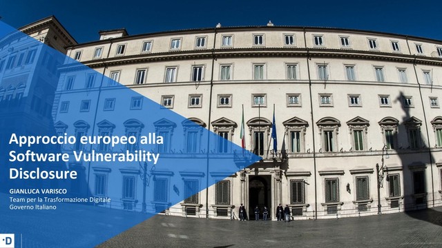 Alcuni mesi fa il CEPS (Centre for European Policy Studies, think tank con sede a Bruxelles) ha avviato una Task Force europea sul tema "Software Vulnerability Disclosure" (SVD) a cui hanno preso parte aziende del settore privato, le istituzioni europee e la società civile con l’obiettivo di definire una serie di raccomandazioni di policy per rendere operativo un processo di Coordinated Vulnerability Disclosure (CVD) in Europa. In questa presentazione si è discusso quanto prodotto dal gruppo di lavoro, i prossimi passi che i paesi membri dell'EU dovranno affrontare e le relative scadenze.