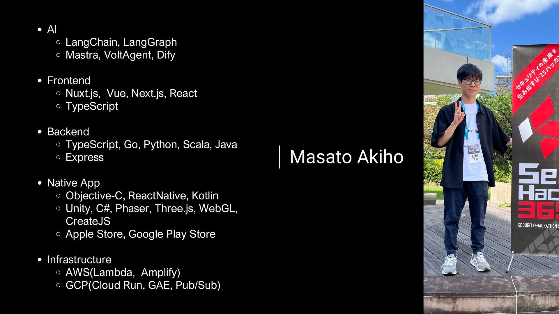 Vue, Next.js, React TypeScript Backend TypeScript, Go, Python, Scala, Java Express Native App Objective-C, ReactNative, Kotlin Unity, C#, Phaser, Three.js, WebGL, CreateJS Apple Store, Google Play Store Infrastructure AWS(Lambda, Amplify) GCP(Cloud Run, GAE, Pub/Sub)