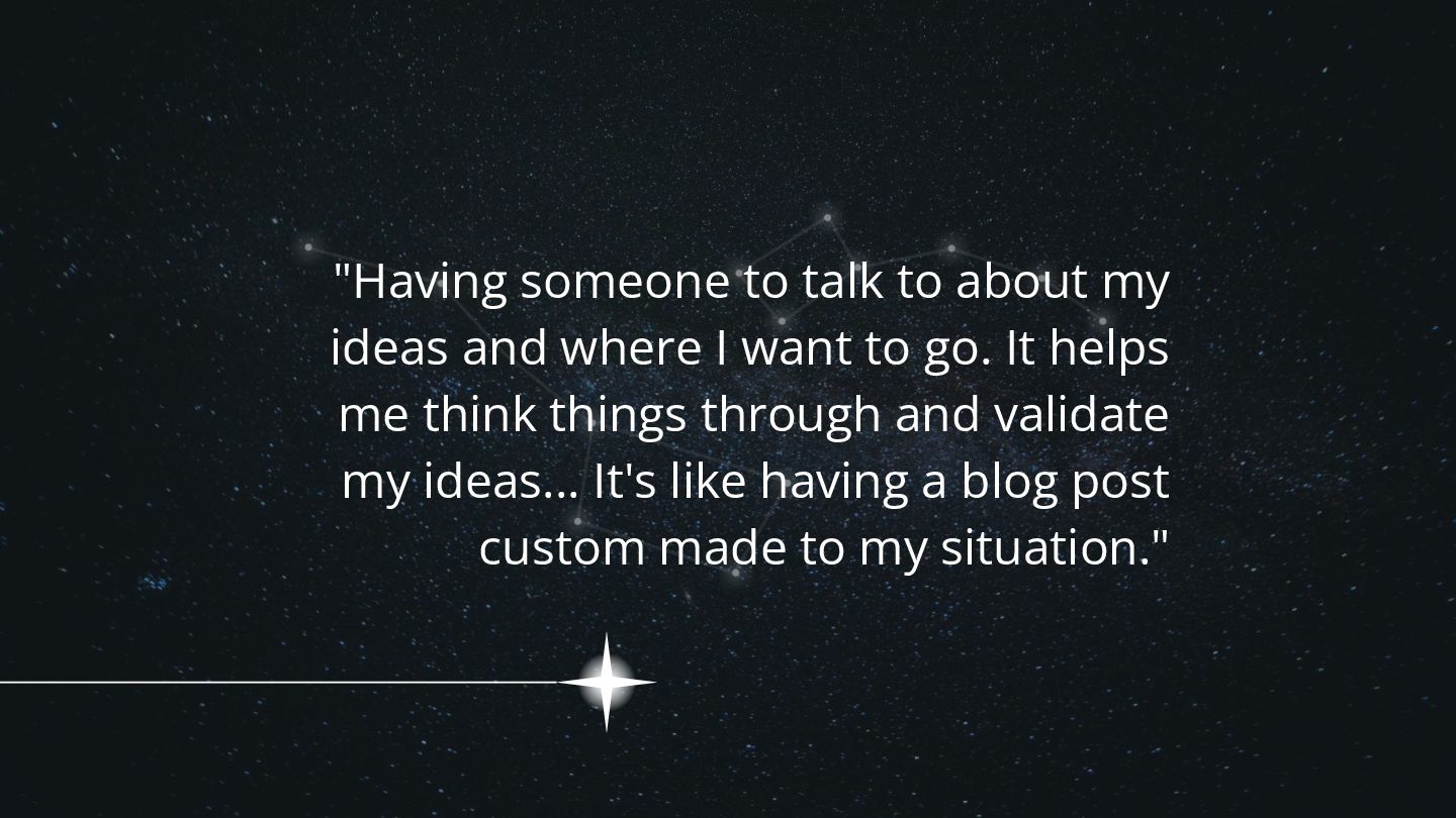 I want to go. It helps me think things through and validate my ideas... It's like having a blog post custom made to my situation."