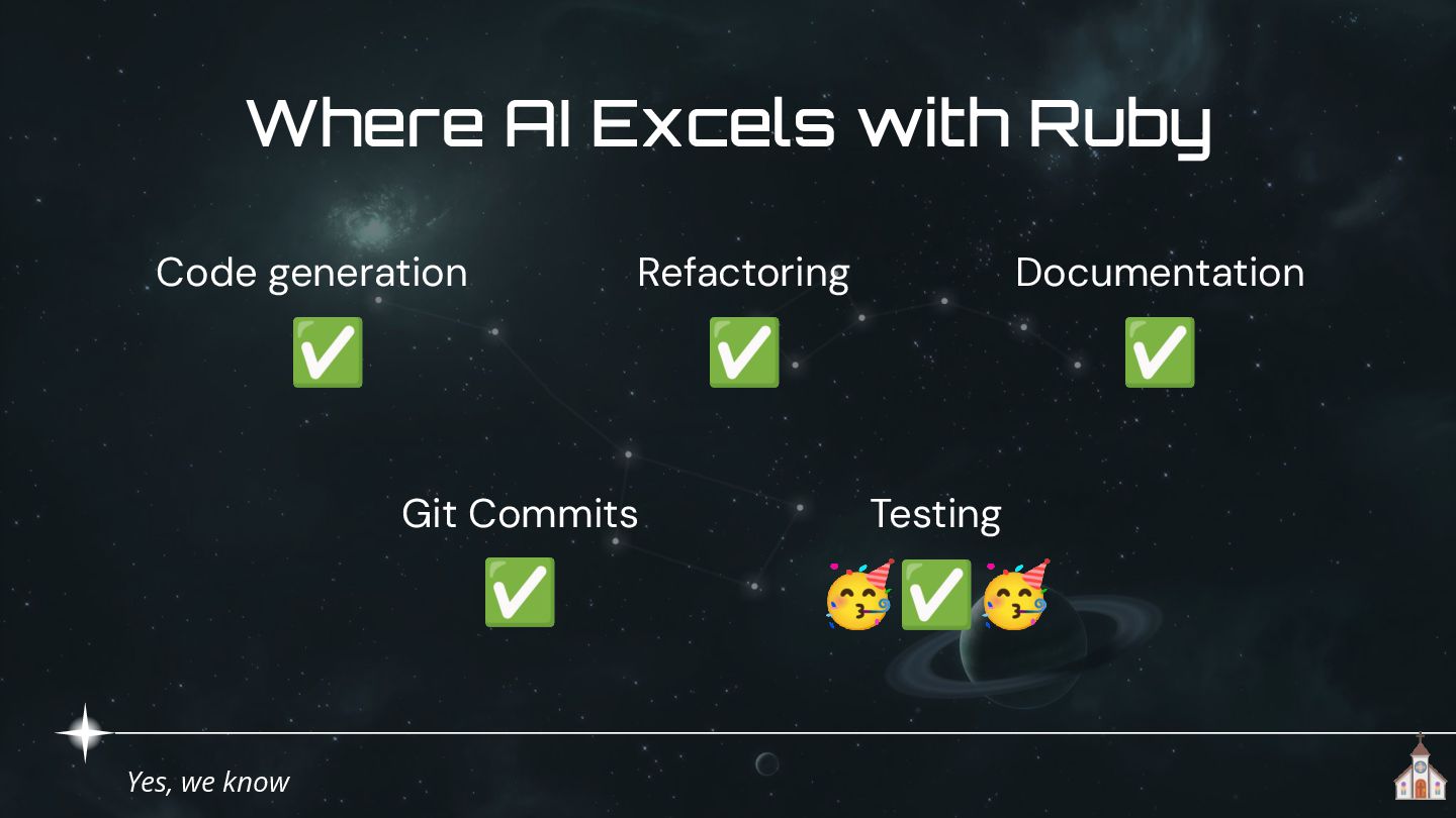 10. Where AI Excels with Ruby ✅ ✅ 🥳✅🥳 ✅ Code
