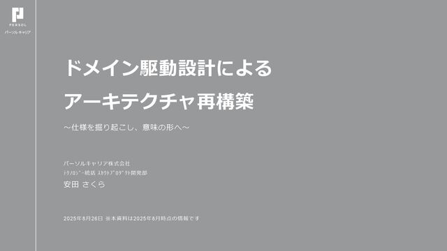 プロダクト急成長に伴う技術的課題を背景に、ドメイン駆動設計(DDD)を軸としたアーキテクチャ再構築に取り組んだ事例を紹介いたします。属人化した仕様や密結合な構造に対し、ロバストネス図を補助的に用いてモデリングを進め、PoC実装を通じて設計の妥当性を検証しました。