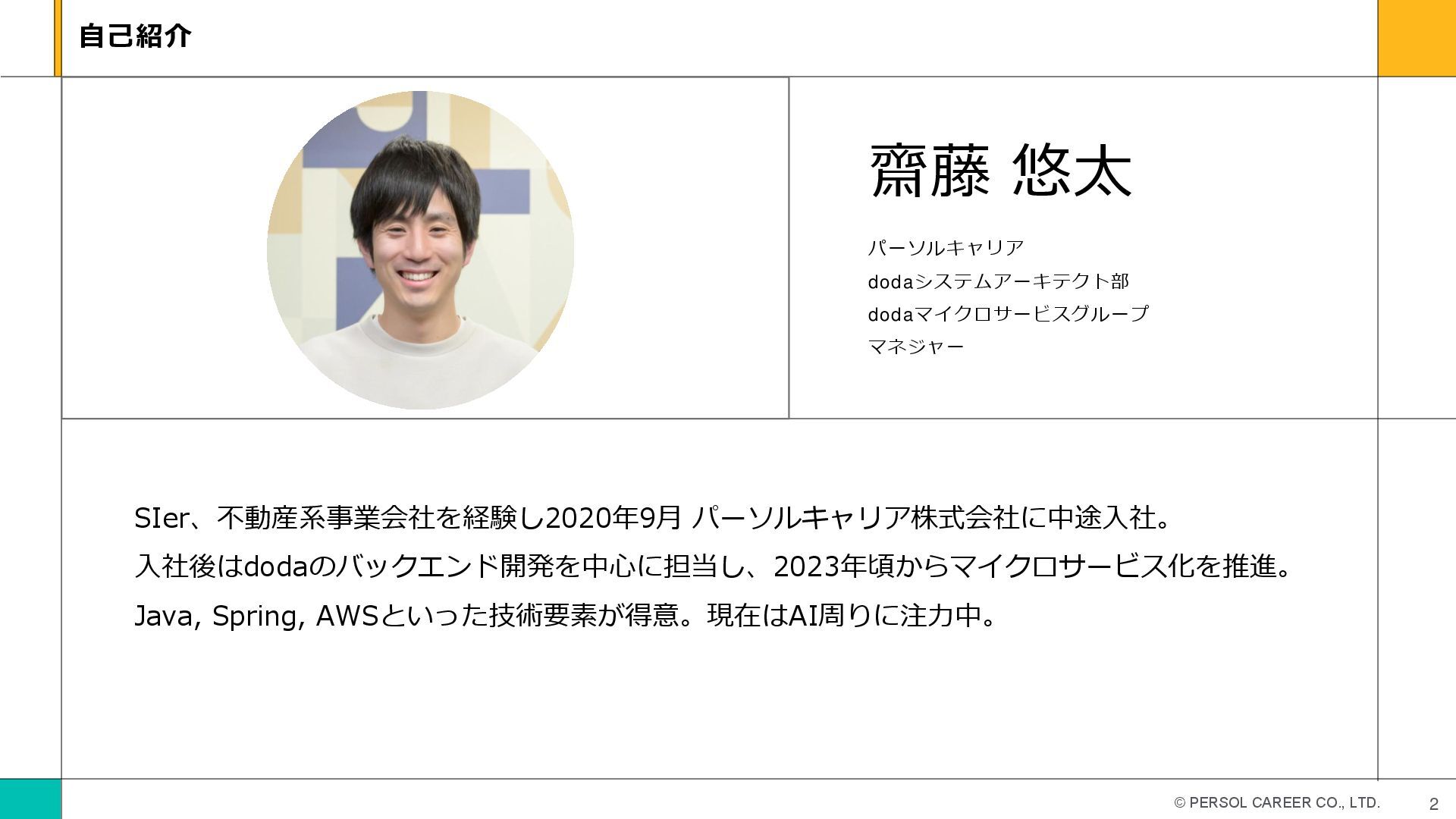 © PERSOL CAREER CO., LTD. 齋藤 悠太 パーソルキャリア dodaシステムアーキテクト部 dodaマイクロサービスグループ