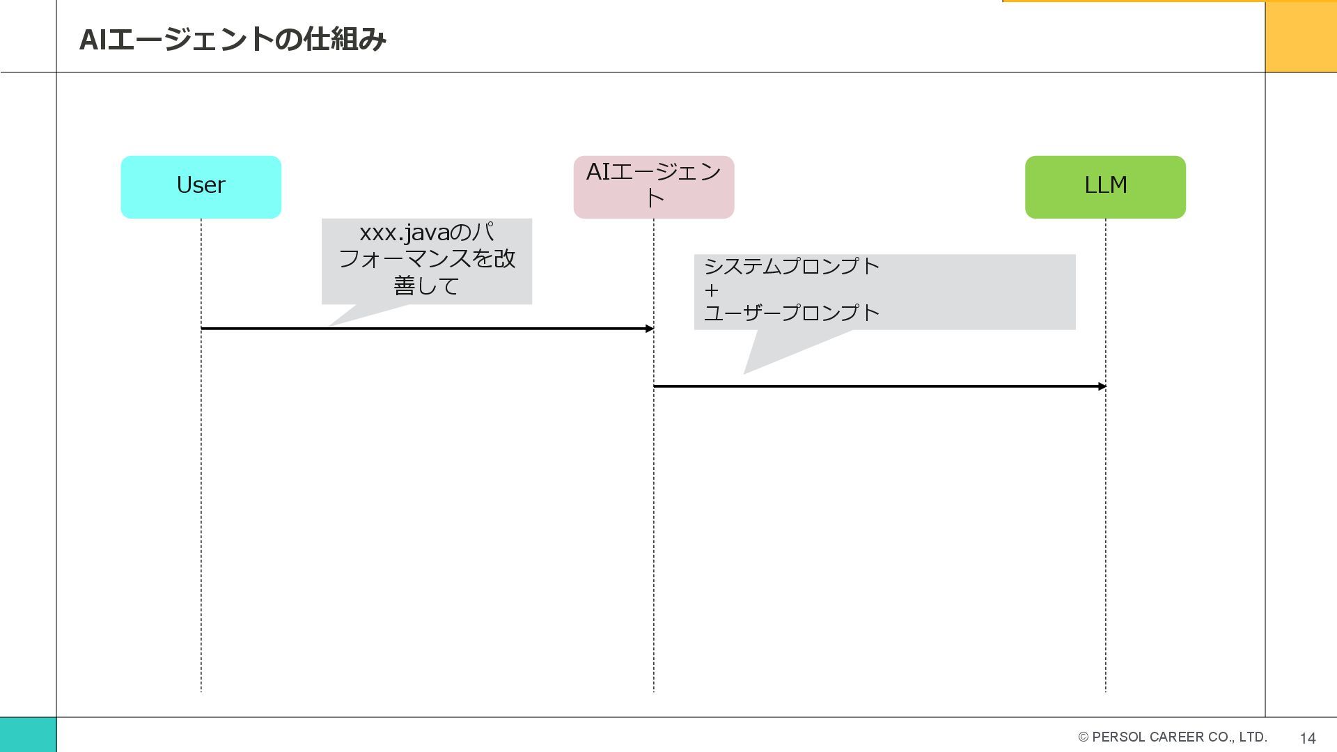 © PERSOL CAREER CO., LTD. 13 AIエージェントの仕組み User AIエージェン ト