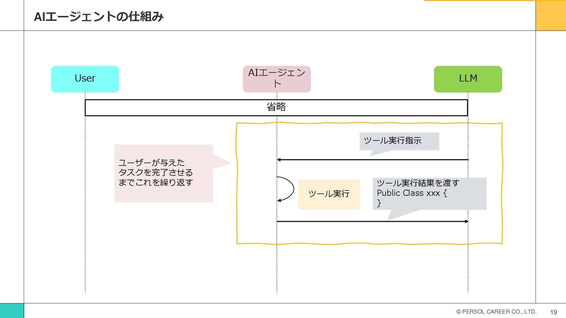 © PERSOL CAREER CO., LTD. 18 AIエージェントの仕組み User AIエージェン ト