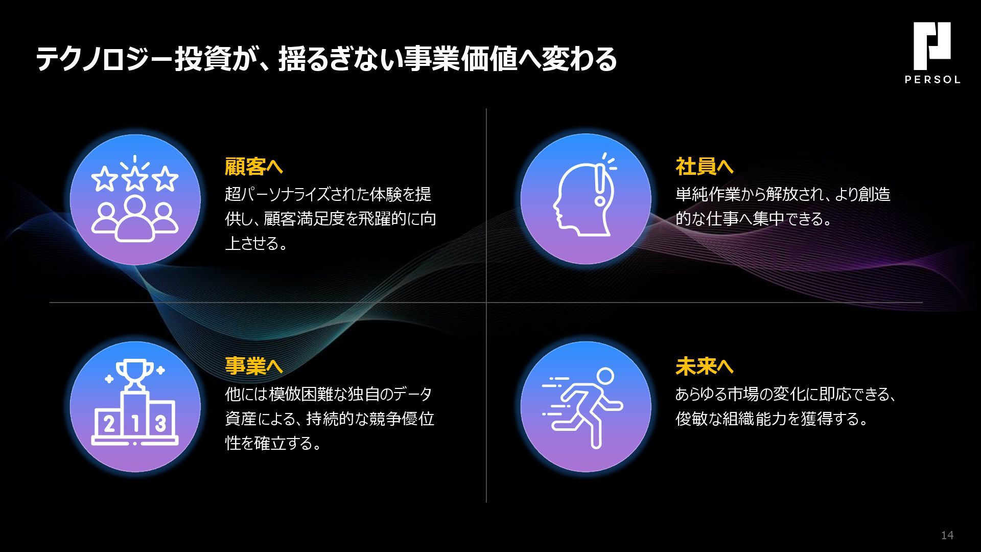 2. 14 テクノロジー投資が、揺るぎない事業価値へ変わる 顧客へ 超パーソナライズされた体験を提 供し、顧客満足度を飛躍的に向 上させる。 社員へ 単純作業から解放され、より創造 的な仕事へ集中できる。 事業へ