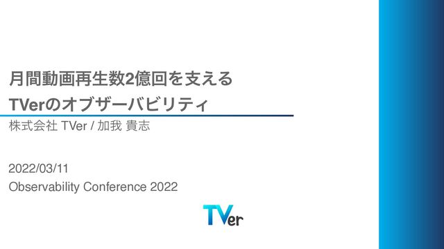 ݄ؒಈը࠶ੜ2ԯճΛࢧ͑Δ TVerͷΦϒβʔόϏϦςΟ גࣜձࣾ TVer / Ճզ وࢤ 2022/03/11 Observability Conference