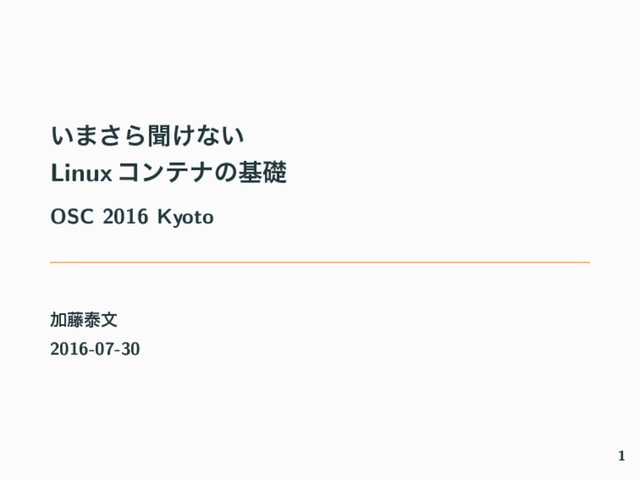"OSC 2016 Kyoto" の発表資料です。当日はこの資料のcgroupの部分(43ページ)まで解説しました。 参考となる情報にはPDF中からリンクをしていますが、資料中のリンクは Speaker Deck 上ではクリックできないので PDF をダウンロードしてご覧ください。