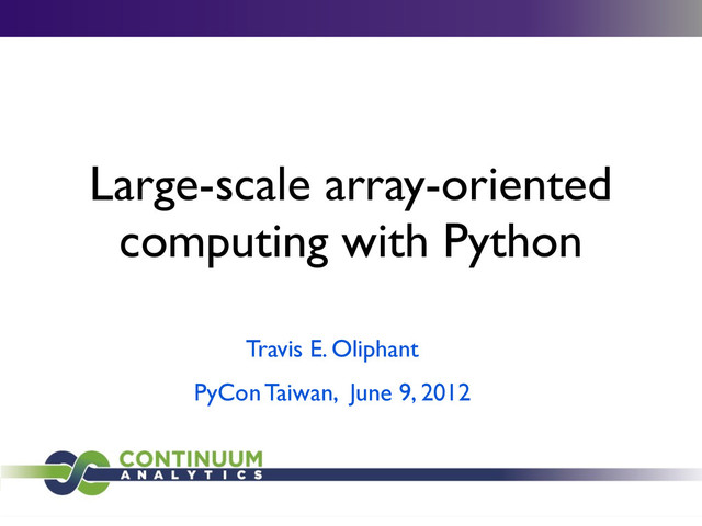 to get fast code that works on arrays and scalars • Need access to a boat-load of C-extensions (NumPy is just the beginning) PyPy doesn’t cut it for us!