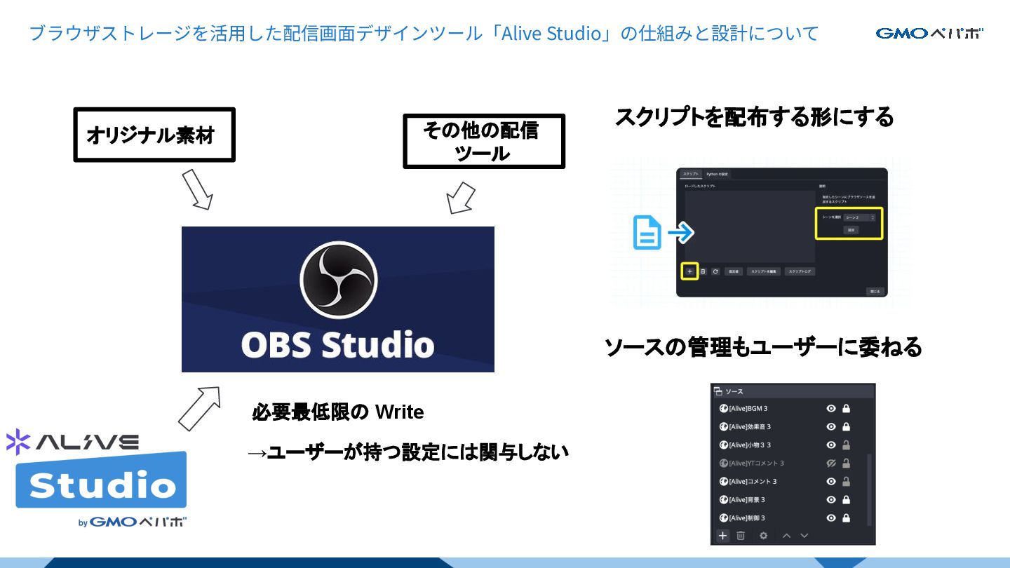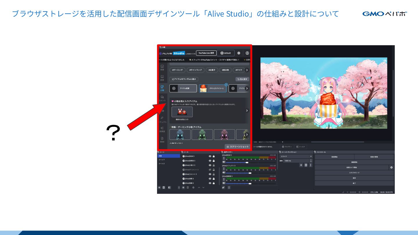 ブラウザストレージを活⽤した配信画⾯デザインツール「Alive Studio」の仕組みと設計について OBSのプラグインを作っているんですね〜!