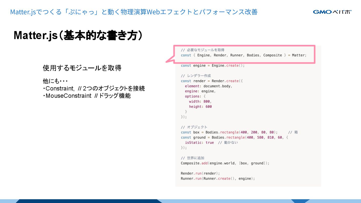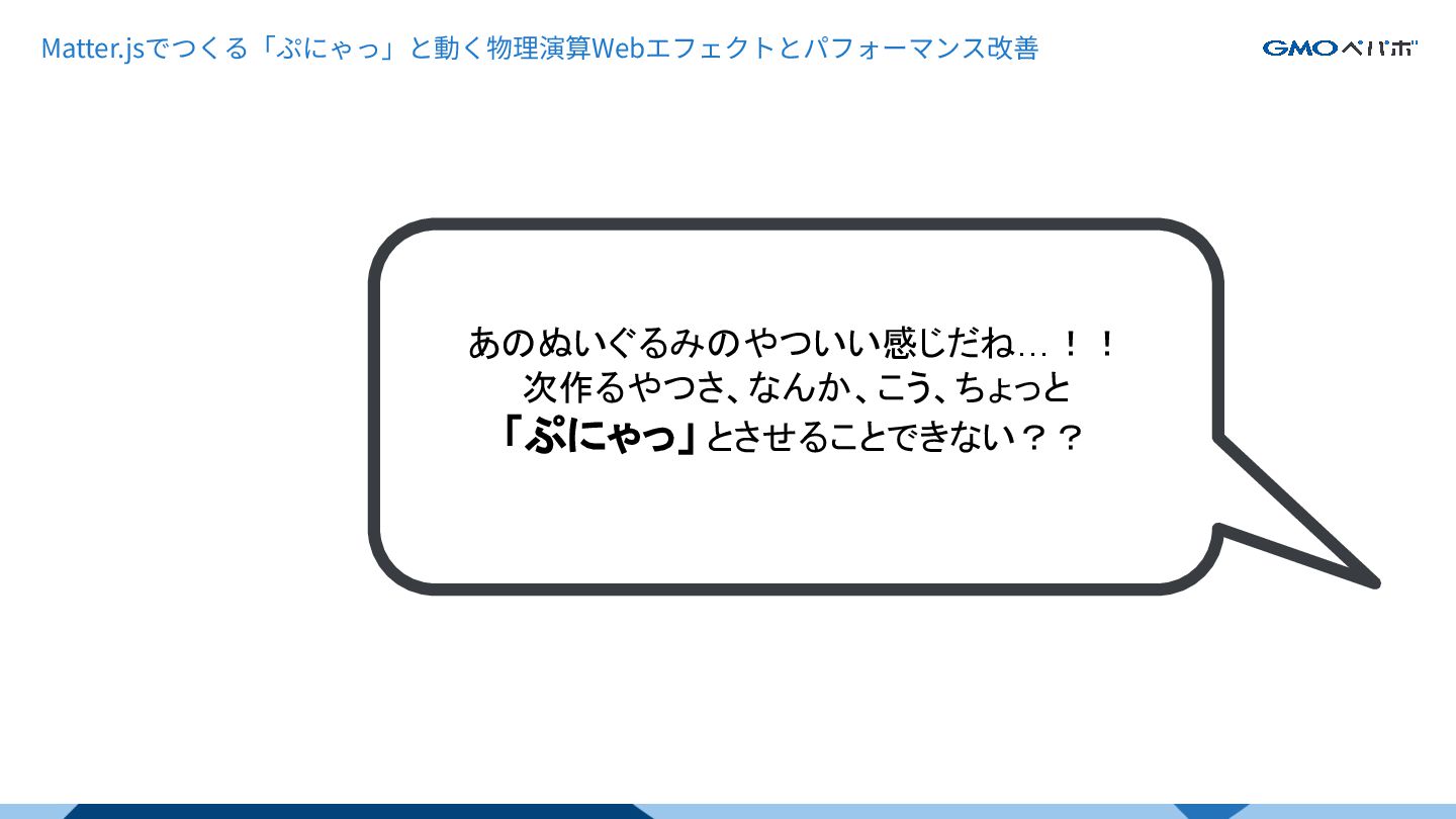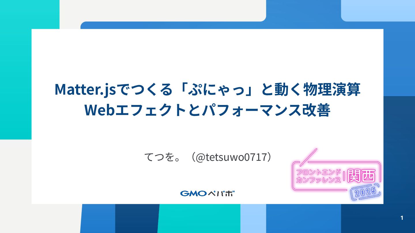 1 Matter.jsでつくる「ぷにゃっ」と動く物理演算 Webエフェクトとパフォーマンス改善 てつを。(@tetsuwo0717)