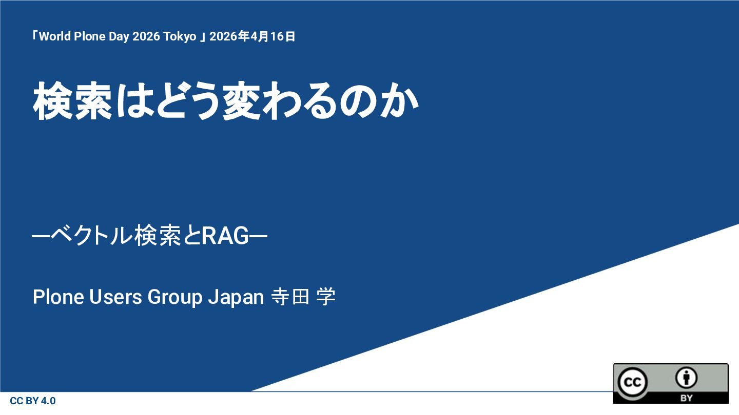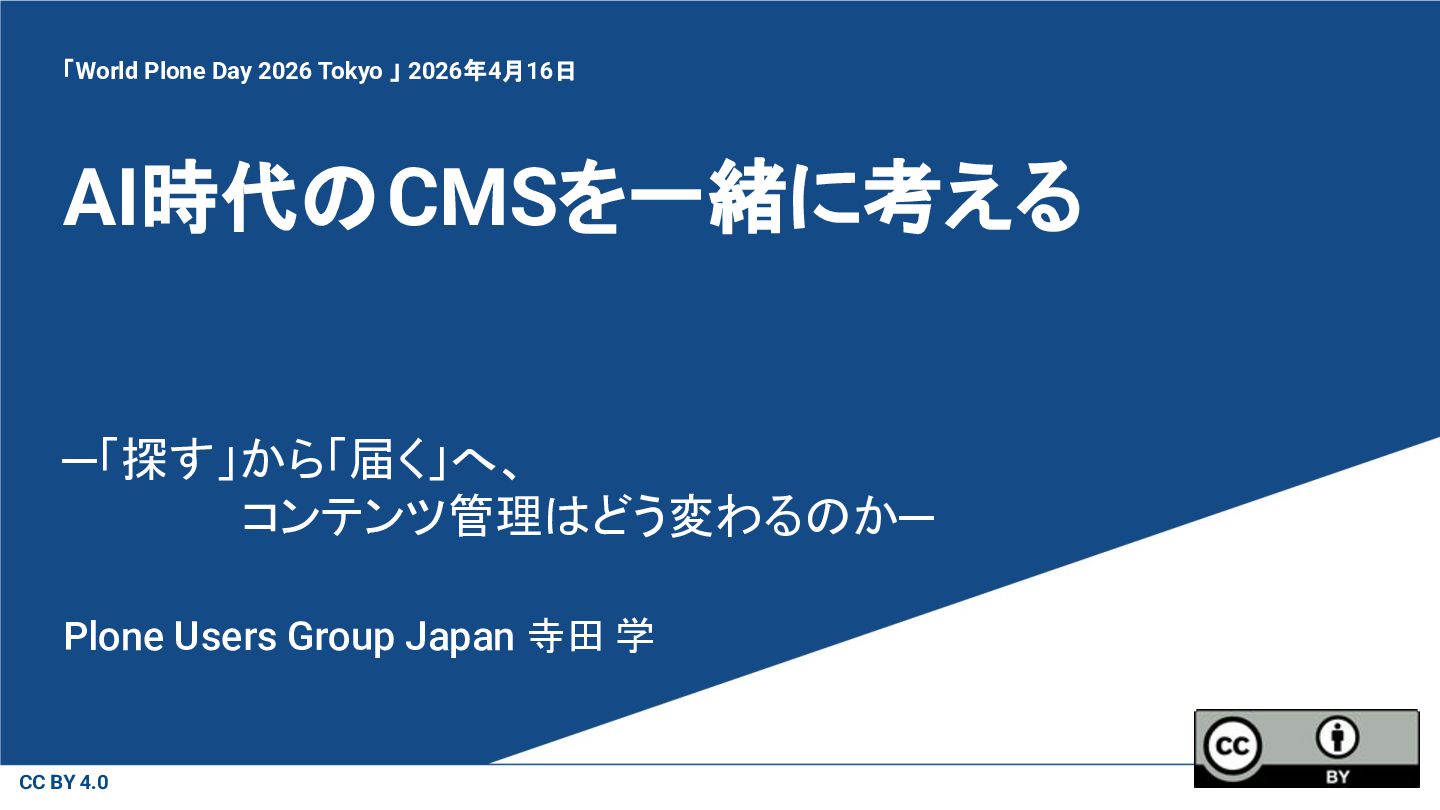 「World Plone Day 2026 Tokyo 」 2026年4月16日 Plone Users Group Japan 寺田 学
