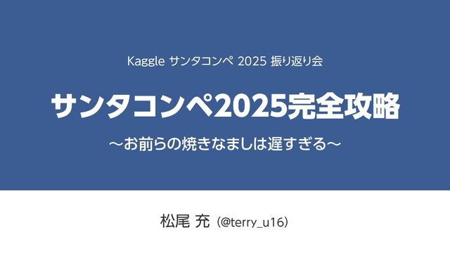 2026/2/25 (水) にKaggle サンタコンペ 2025 振り返り会で発表させていただいたスライドです。