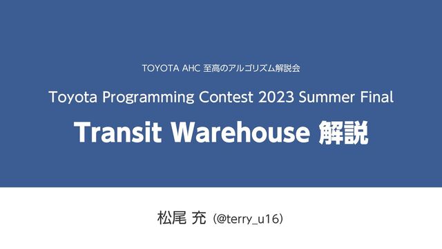 2024/01/27(土)に行われた、TOYOTA AHC 至高のアルゴリズム解説会における解説スライドです。 https://atcoder.jp/contests/TOYOTA_AHCSupremeAlgorithmExplanatoryMeeting