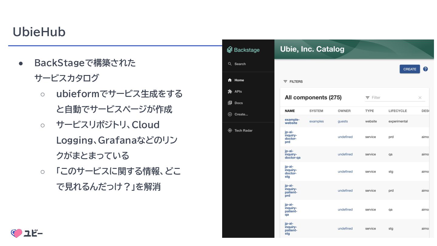 UbieHub BackStageベースの サービスカタログ サービスに関する情報を 集約