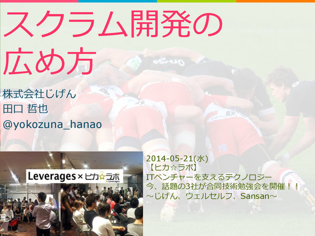じげんにスクラムがどのように広まっていったのか、導入からチームへの拡散まで、フェーズごとに話します。