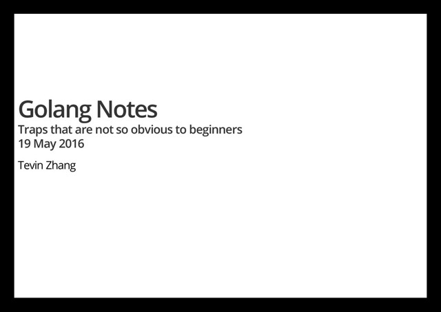 less garbage Avoid conversion between []byte and string, or you make garbage lose performance Whenever you start a goroutine you need to know where it dies Embedding is not Inheritance, use Interface