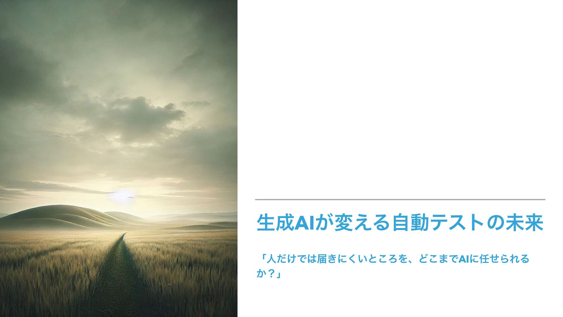 ▸ ͨͩ͠ɺͦΕΒͷʮࢧԉʯ͸ੜ੒AI͕େ͖͘ิॿ͢Δ༨஍͕͋Δ ▸ ͓͜ͳ͏΂͖ߦಈΛྻڍͯ͠ɺυϥϑτͷςετܭըΛੜ੒͢Δ ▸ ςετର৅ͷ࢓༷΍ιʔείʔυ͔Βɺςετ෼ੳͷͨΊͷ෼ྨͳͲ͕༰қԽ͞ΕΔՄೳੑ͕ߴ͍ ▸ ςετ׬ྃ͸ɺςετͷϞχλϦϯάͱίϯτϩʔϧɺ͓Αͼաڈͷςετ׬ྃ൑அ৘ใ͔Β൑அͷ ൒ࣗಈԽ͕ਐΉ
