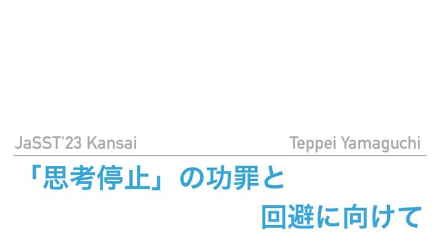 Material of the keynote speech at JaSST'23 Kansai( #jasstkansai ) on the theme of "「思考停止」の功罪と回避に向けて(The merits and demerits of stopping thinking)".