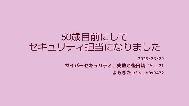50歳目前にして セキュリティ担当になりました 2025/03/22 サイバーセキュリティ、失敗と後日談 Vol.01 よもぎた a.k.a. th0x0472