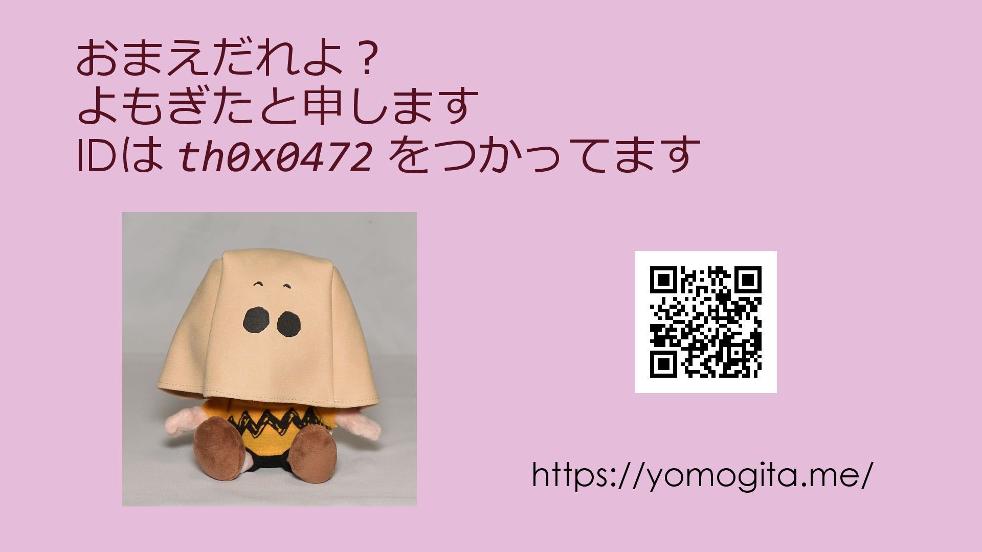 おまえだれよ? よもぎたと申します IDは th0x0472 をつかってます https://yomogita.me/