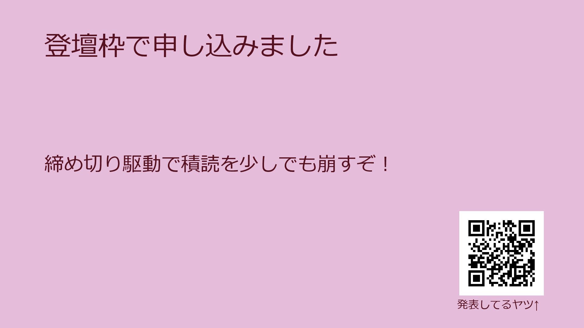 登壇枠で申し込みました 締め切り駆動で積読を少しでも崩すぞ! 発表してるヤツ↑
