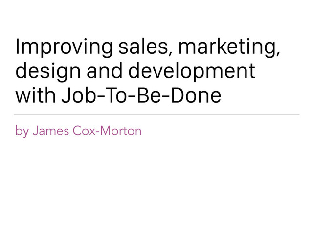 This talk covers the basics behind the 'Job to be done' product lens, and how it can be used to create products with resonate better with users.