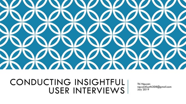 Set expectations How to interview (method) ! In-person (IDI, pair, FGD,…) ! Street intercept ! Remotely video/live stream or phone Content of interview