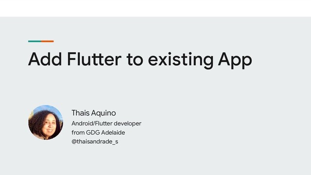 Talk prepared for the Frontend ADL meetup in Adelaide/Australia. Showcasing the feature to add a Flutter module to an existing Android app.