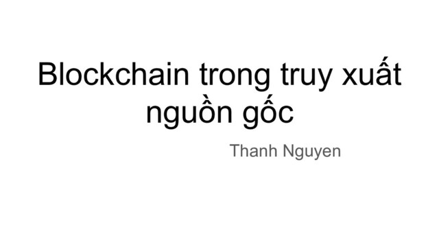 xuất nguồn gốc không ngừng phát triển trên thế giới, thu hút nhiều công nghệ tiến tiến như RFID (Radio Frequency Identification - công nghệ nhận dạng đối tượng bằng sóng vô tuyến), IoT (Internet of Things - kết nối vạn vật) và hiện nay là blockchain - Truy xuất nguồn gốc là khả năng theo dõi, nhận diện một đơn vị sản phẩm trong toàn bộ quá trình: sản xuất nguyên liệu, chế biến đến phân phối sản phẩm. -> Từ định nghĩa trên, ta có thể ứng dụng blockchain cho bài toán truy xuất nguồn gốc. Hiện nay, ưu tiên hàng đầu trong việc truy xuất nguồn gốc là bảo vệ người tiêu dùng thông qua việc nhận biết sản phẩm liên quan nhanh hơn và chính xác hơn