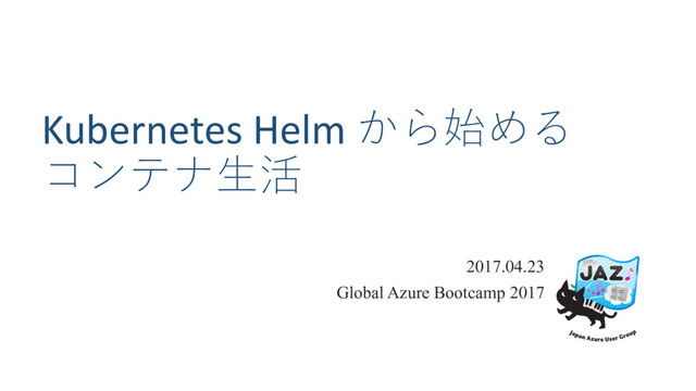 Kubernetes Helm から始める コンテナ⽣活 2017.04.23 Global Azure Bootcamp 2017