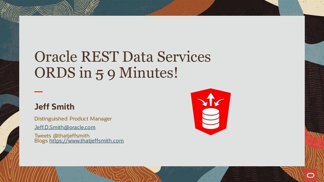 and What’s in it or Me? Oracle Mag AUTO REST & REST Enabled SQL • And don’t forget Oracle-Base! ORDS on Other Resources This presentation in video format – see Jeff’s YouTube Channel
