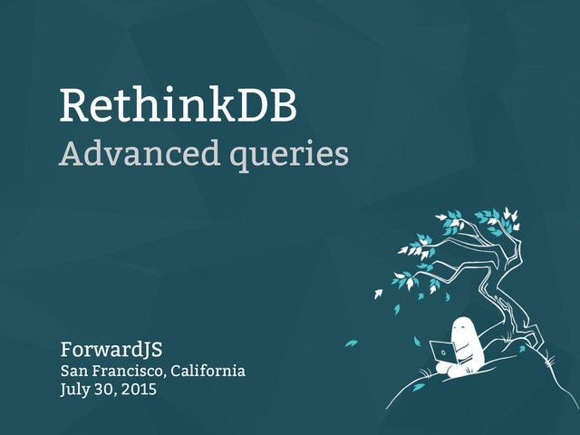 { name: 'Chicago', state: 'IL' } ] // Will only run when 'Chicago' is modified r.table('cities') .filter({ state: 'IL' }) .changes() Advanced changefeeds listen for cities in Illinois