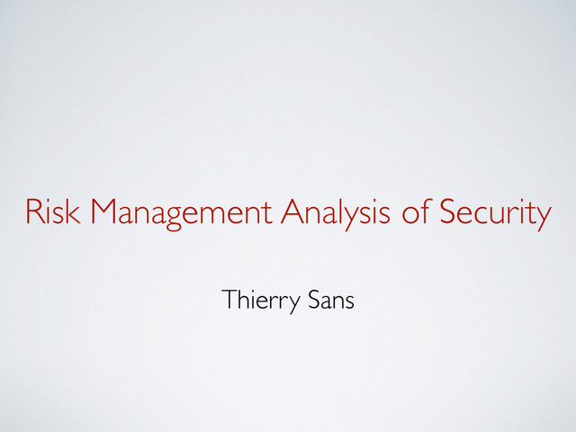 prevent a threat, you lower the risk ✓ Performing an attack is more or less difficult the assets to protect versus the attacker’s efforts ✓ Deploying a counter-measure has a cost cost of recovering versus cost of deployment