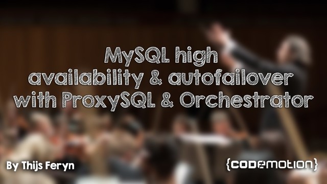 See https://feryn.eu/speaking/mysql-high-availability-autofailover-proxysql-orchestrator-codemotion-milan-2018/ for more information about this presentation.