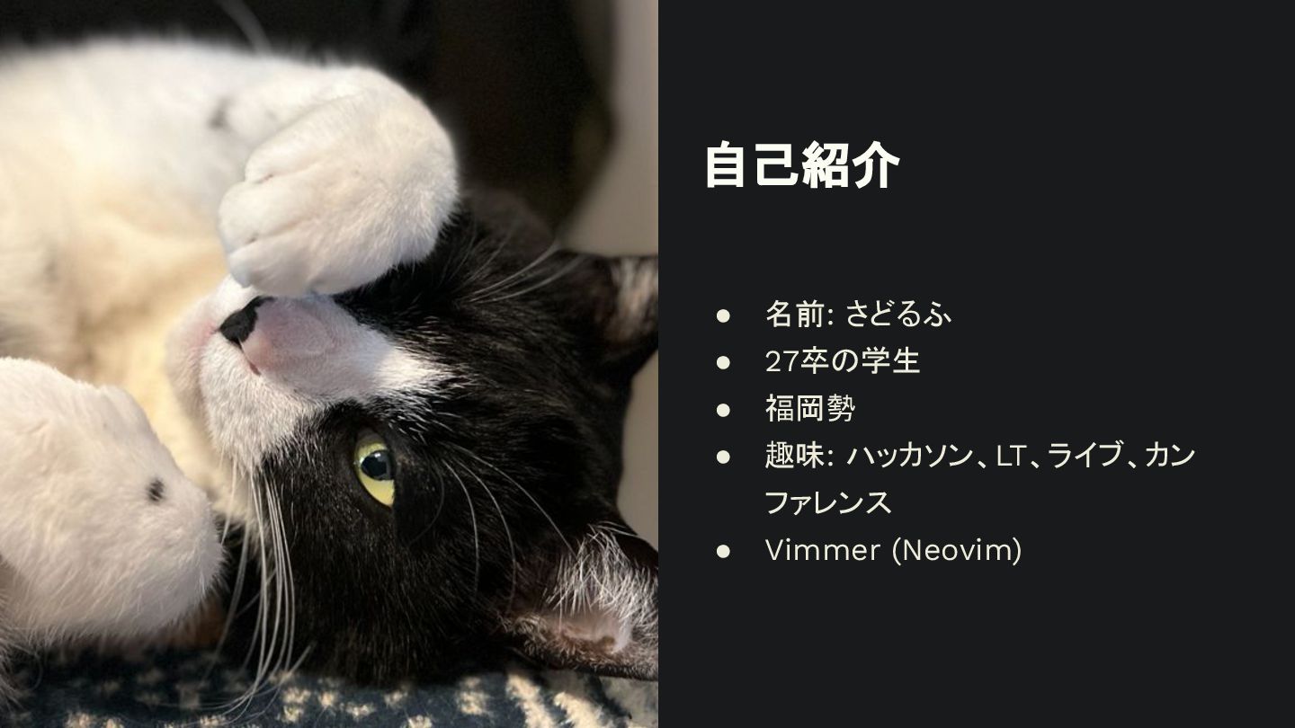 自己紹介 • 名前: さどるふ • 27卒の学生 • 福岡勢 • 趣味: