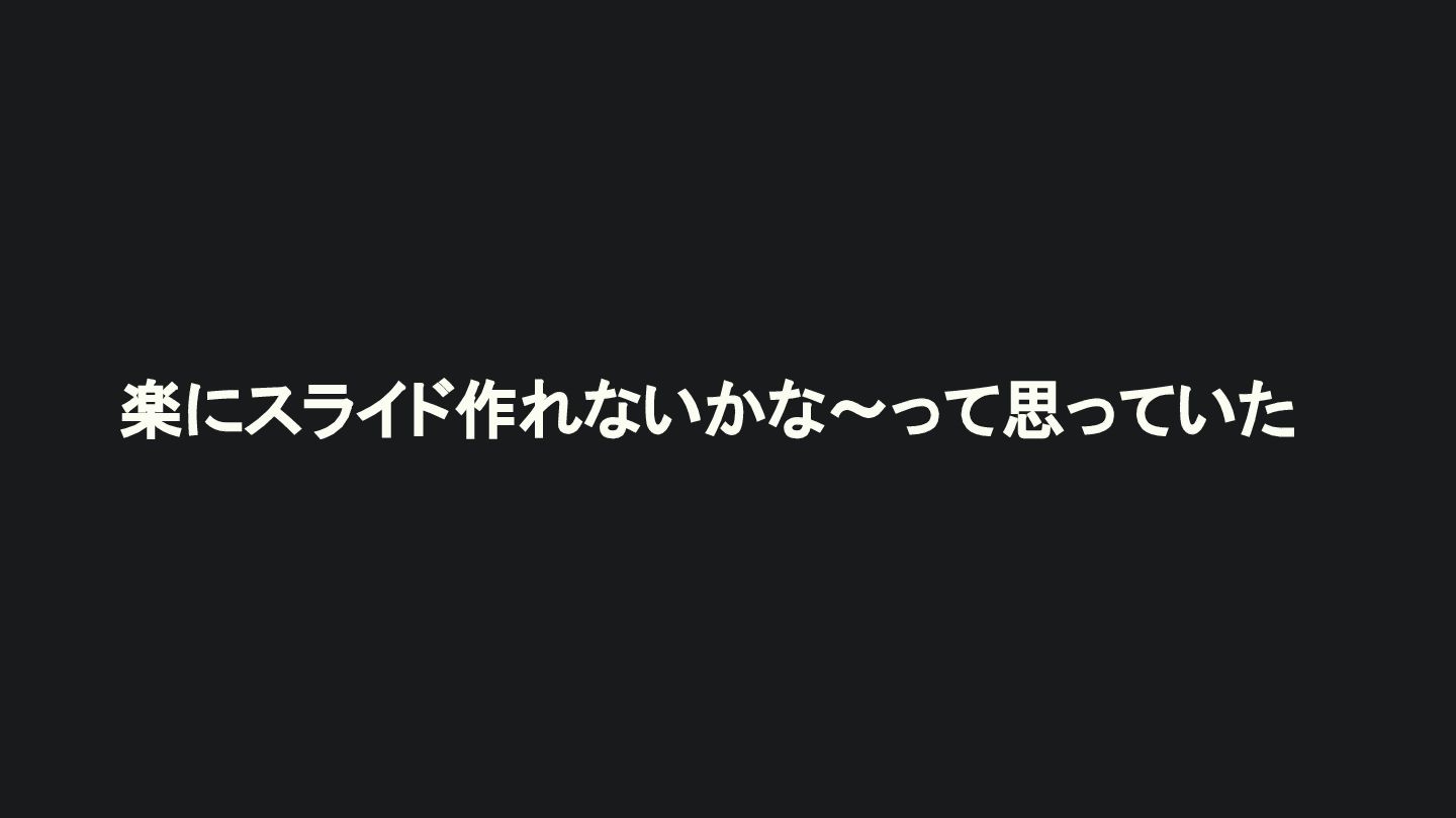 資料準備(特にスライド ) 登壇するのは好きだけど、登壇のスライドを作るのがめんどくさいなと思ってい た 昔からスライド作成やデザインが関わってくるものが苦手